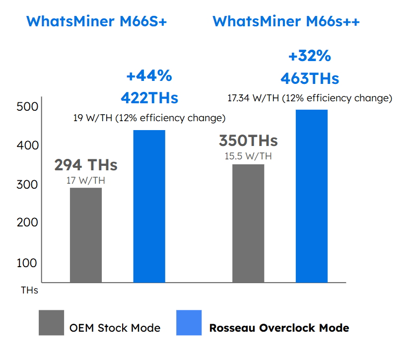 40–46% safe continuous overclocking transforms miner ROI. 294 TH/s → 430 TH/s (M66S+)
